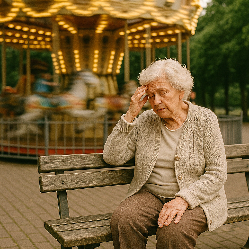 vertigo - A feeling of being off-balance, dizzy, and spinning.