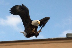 swoop - (especially of a bird) To move rapidly downward through the air