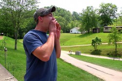 holler - (of a person) give a loud shout or cry