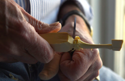 whittle - To carve wood into an object by repeatedly cutting small slices from it