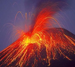 erupt - To explode suddenly after forces can't be held back any longer
