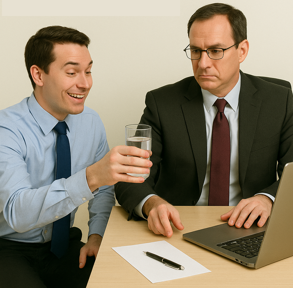 fawning - Acting overly eager to please someone, especially someone in power.