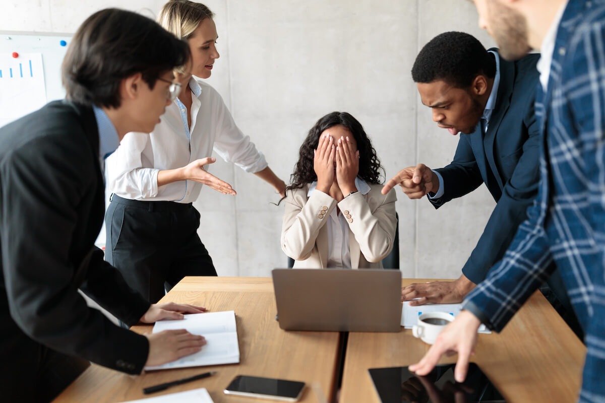 jeer - Laughing or shouting insults at someone to show you have no respect for them.
