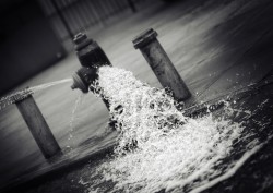 gush - For a liquid to flow out in a rapid and plentiful stream, often suddenly